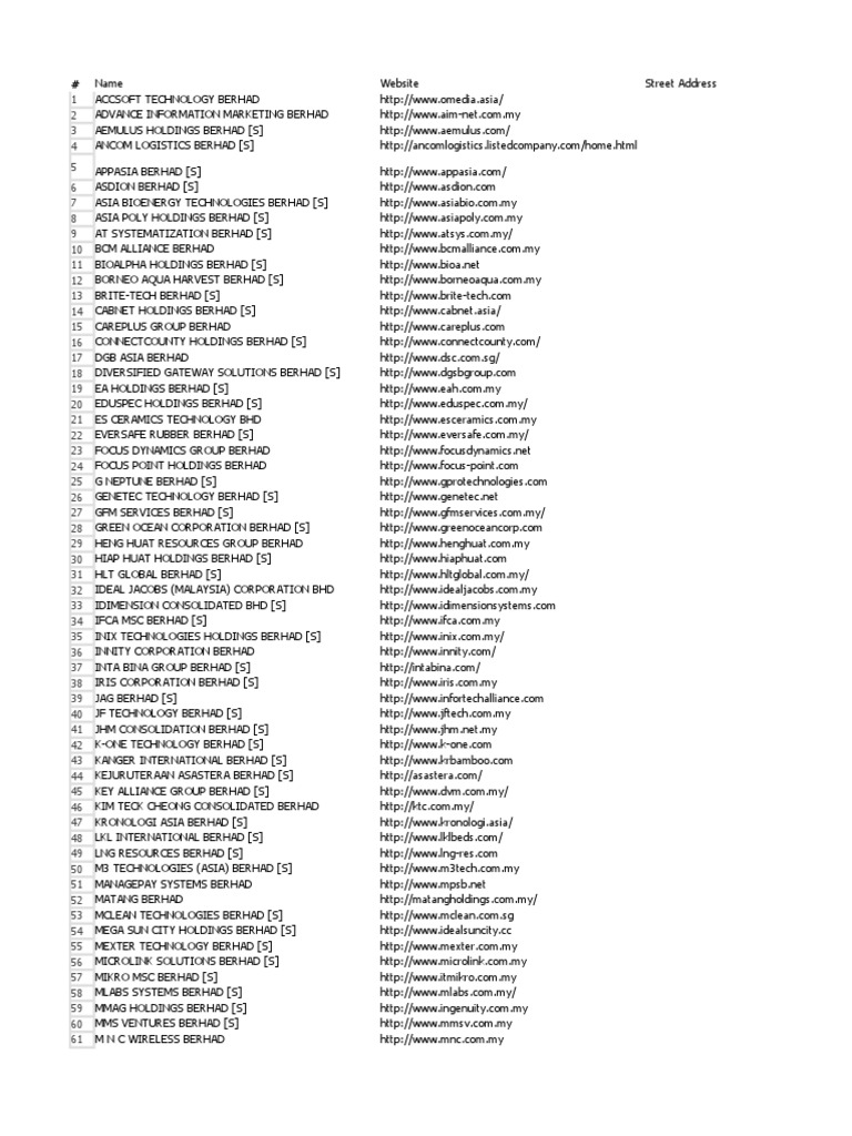 Listed Companies Pdf Service Companies Companies Of Asia